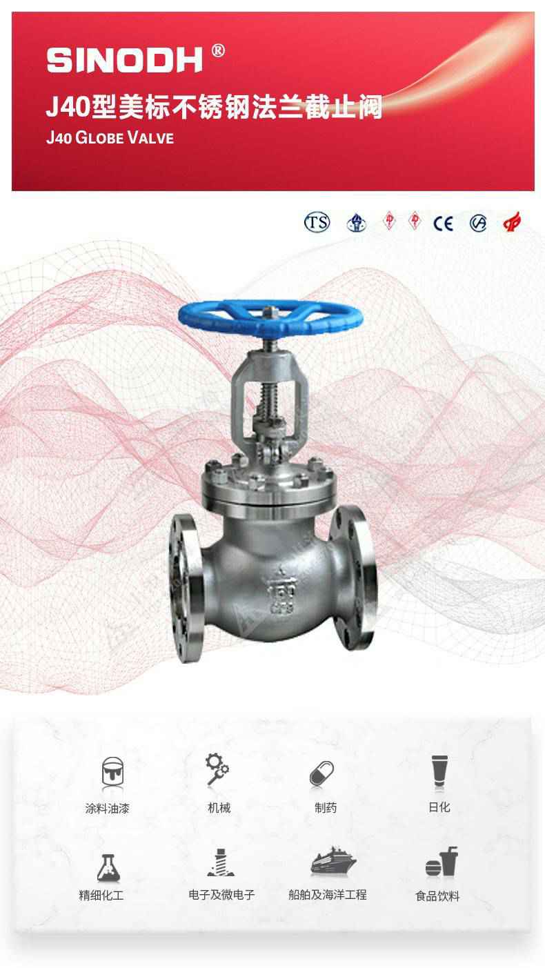 J40型美标不锈钢截止阀,为bat·365(中国)正版唯一官网自主研发生产。本产品的设计制造符合美国国家标准ANSIB16.34,美国石油学会标准AP1 6D和AP I 600要求,产品结构紧凑密、刚性好、封性性能优秀是一种最常见的启闭阀,利用闸板的上下工作来接通(全开)和截断(全关)管道中的流体介质。